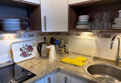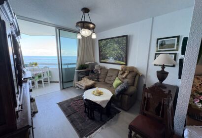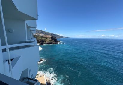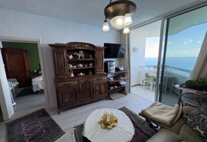 Piso renovado y totalmente equipado en la 4ª planta del Hotel Precise. El piso está orientado al mar y dispone de dos balcones con impresionantes vistas despejadas al mar y a las rocas marinas. El Hotel Precise (antiguo Maritim) está situado en primera línea de mar en las afueras de Puerto de la Cruz y ofrece recepción 24 horas, piscinas climatizadas, jardines, pistas de tenis, gimnasio, autobús lanzadera, restaurantes, etc. La cuota mensual del apartamento incluye los gastos de agua, electricidad y wifi. El piso tiene un salón con balcón y cocina, un dormitorio también con balcón y baño en suite. Una propiedad con un confort de vida de alto nivel, una cocina nueva a medida y muebles de alta calidad en un complejo muy bien mantenido que no deja nada que desear.