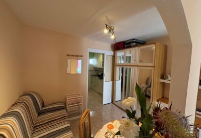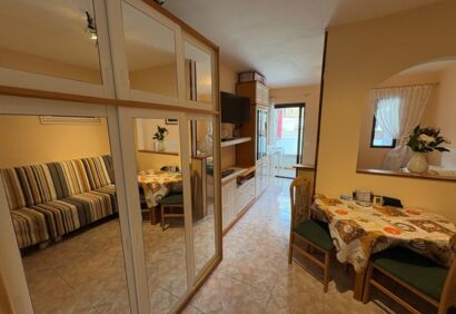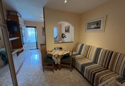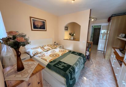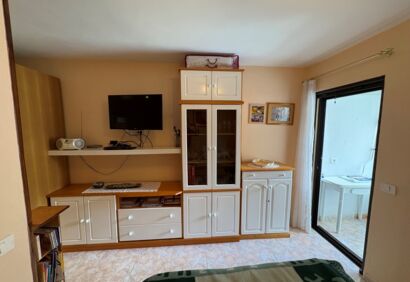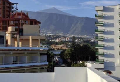 Acogedor estudio totalmente amueblado y equipado en una zona residencial preferente en el corazón de Puerto de la Cruz. La popular Playa Jardín, así como la Plaza del Charco y el casco antiguo están a sólo unos minutos a pie. El piso está situado en la soleada parte del edificio orientada al sur, por lo que es muy tranquilo y no se ve afectado por el ruido del tráfico. La vista desde el balcón da a la zona de la piscina, que actualmente está siendo renovada. En la 5ª planta del cuidado edificio hay una gran terraza soleada con vistas al mar y al Teide. La ubicación garantiza una amplia infraestructura en las inmediaciones con restaurantes, entretenimiento e instalaciones culturales.