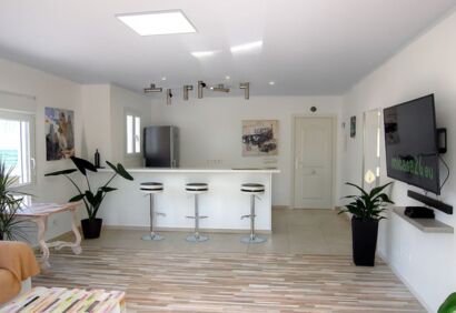 Moderno bungalow completamente renovado en el corazón de Puerto de la Cruz, a pocos minutos a pie de la playa. La casa, de una sola planta, ofrece una amplia y luminosa zona de estar y una gran terraza en la azotea. Sería posible ampliar la casa mediante una planta mas y también instalar una piscina. Su ubicación en una calle sin salida en pleno centro de Puerto de la Cruz garantiza una vida tranquila con un clima equilibrado durante todo el año, una amplia infraestructura con restaurantes, tiendas y atención médica a poca distancia. Un bungalow independiente de una sola planta con garaje en el centro de la ciudad es una oferta poco común.