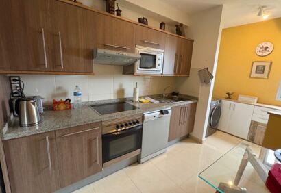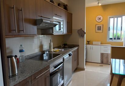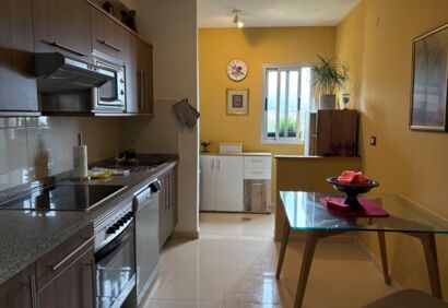 Moderno apartamento en esquina situado en la última planta, con vistas panorámicas al Atlántico y al valle de La Orotava. El apartamento, de buena distribución, es luminoso y acogedor. El precio incluye una plaza de aparcamiento subterráneo y un trastero independiente. El complejo residencial, construido en 2008 a las afueras de La Orotava, goza de una ubicación tranquila, pero está muy bien comunicado y se llega en pocos minutos al centro de la ciudad histórica, con todas sus comodidades e infraestructuras. El ascensor lleva directamente desde el aparcamiento subterráneo hasta la puerta del piso. El trastero, de unos 3,5 m², ofrece espacio de almacenamiento adicional. Delante del edificio hay numerosas plazas de aparcamiento libres.